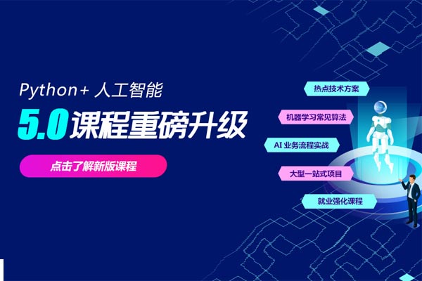 传智播客&黑马程序员已于2019.2.21更新5.0版课程大纲,从16年至今,作为率先推出Python+人工智能课程的培训机构,在一次树立行业新标杆,及时的更新的培训大纲内容,我们一起来看看有什么新变化吧。查看全文>>
