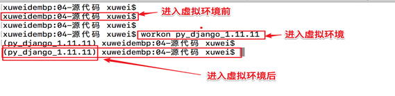 工作在虚拟环境上,提示符最前面会出现"(虚拟环境名称)"。