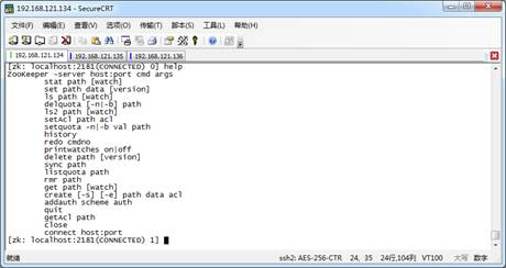 从图1可知,我们已经成功连接到Zookeeper服务。接下来,通过Shell命令操作Zookeeper。具体操作如下。