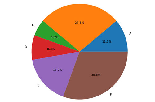 pie_labels = np.array(['A', 'B', 'C', 'D', 'E', 'F'])